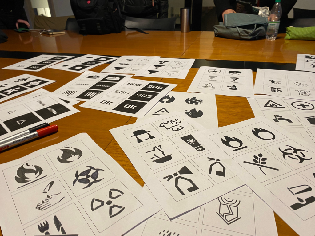 Version 20 of Guemil Icons was developed between August and December 2025 by Michelle Müller, Fernanda Pineda, Rodrigo Ramirez, Javiera Vallejos, Samuel Vasquez, and Rocío Molina as an update aimed at optimizing the design of visual information for emergency contexts. This version features a lighter and more refined appearance, along with a technical emphasis on its stencil-based reproduction, thus expanding its uses across different media and situations.
